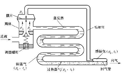 上面是內(nèi)平衡熱力膨脹閥的工作原理圖-制冷系統(tǒng)中制冷劑流程圖
