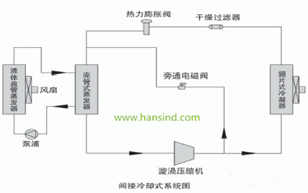但也有些朋友們希望用常規(guī)冷水機組對其降溫,此時就需要采用間冷式工業(yè)