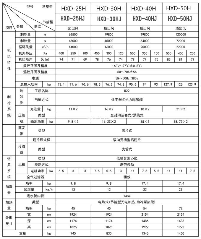 瀚信德恒溫恒濕機(jī)技術(shù)參數(shù)
